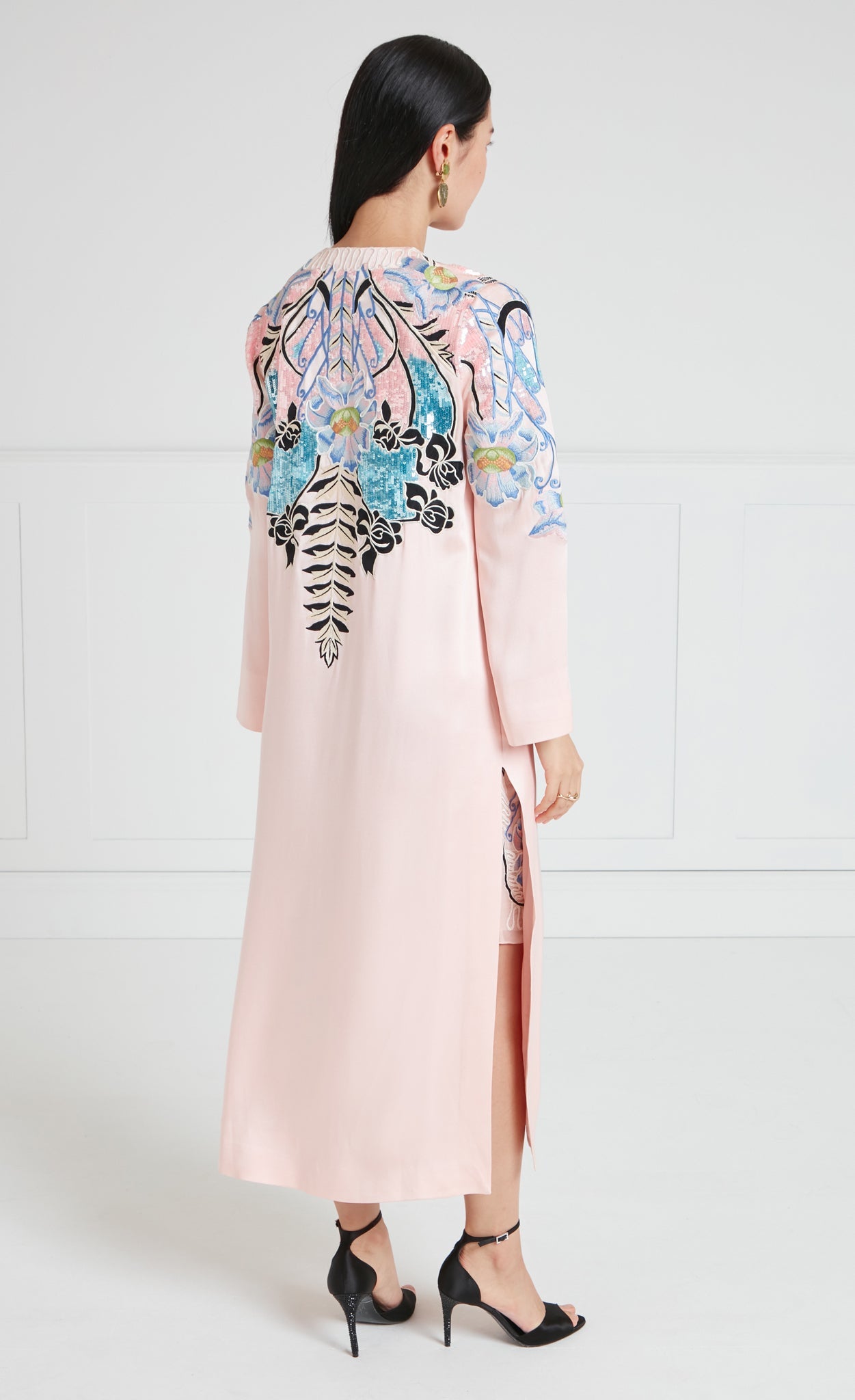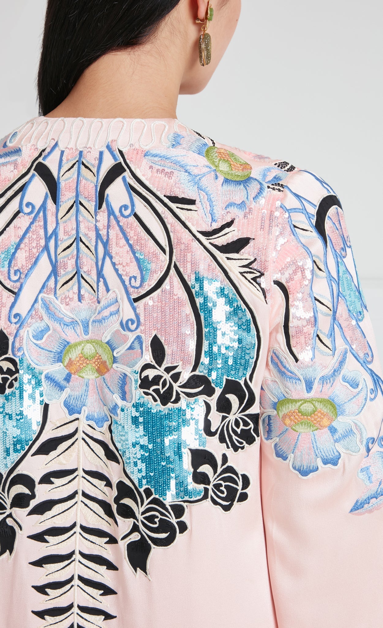 The kimono-style Gracia Coat is a romantic showcase of intricate sequin and stitch embroidery, featuring bold floral motifs inspired by Spanish Art Nouveau. It¡¯s a striking choice for statement daywear or evening occasions, especially when teamed with the Gracia Mini Dress.